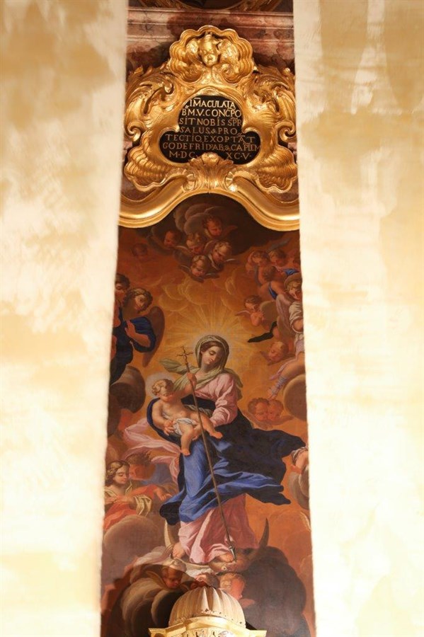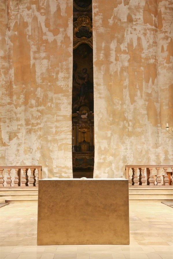Druhá instalace, monumentální plátno (14 x 9 m), bude oddělovat po celých 50 dnů - od Velikonoční neděle do letnic oltářní prostor kostela od hlavní lodě. Úzká štěrbina uprostřed umožní pohled za plátno a tím také pohled do nové prostorové a symbolické dimenze. V předvečer Velikonoční neděle (26.3. | 20.00 hodin) se koná „midisáž“ s umělcem a představením českého skladatele Michala Rataje „MISSA abstracta“. Během „finisáže“ 15. 5. v 16 hodin budou čeští a němečtí účastníci diskutovat v rámci pódiové diskuze k tématu „Nábožentví v umění“.