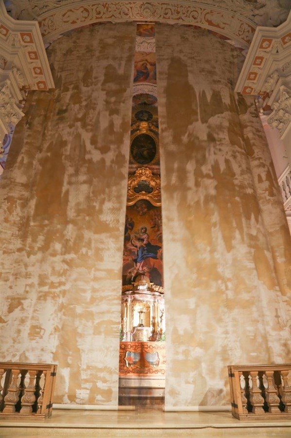 Během postní a velikonoční doby se barokní interiér promění díky dvěma speciálně pro Speinshart vytvořenými monumentálními uměleckými intervencemi. Jeho abstraktní záměrně roztržené malby otevírají pozorovateli nové perspektivy. Projekt se skládá ze dvou částí: během čtyřicetidenní postní doby od Popeleční středy (10.2.) do Velikonoční neděle (27.3.) bude oltářní obraz zakrývat vlastnoručně vyrobené plátno.