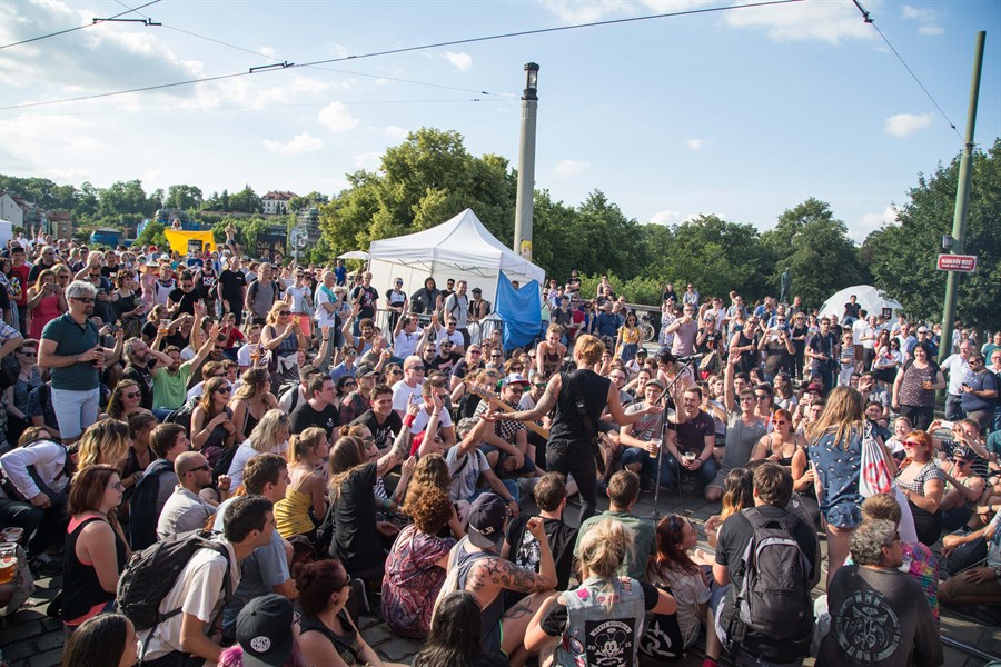 Obě strany mostu obejmula dvě velká pódia, na nichž střídavě vystupovali hudebníci z České republiky i Německa. Na malostranském pódiu si mohli návštěvníci dopoledne poslechnout také muzikálové představení v podání žáků pražské Základní školy německo-českého porozumění a Gymnázia Thomase Manna. Již dlouhá léta se pravidelně setkávají s přáteli z německého Heilsbronnu a pracují na tom, aby spolu dovedli souznít nejenom hudebně, ale také lidsky.