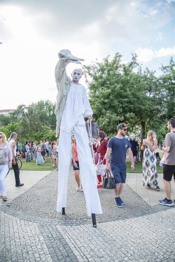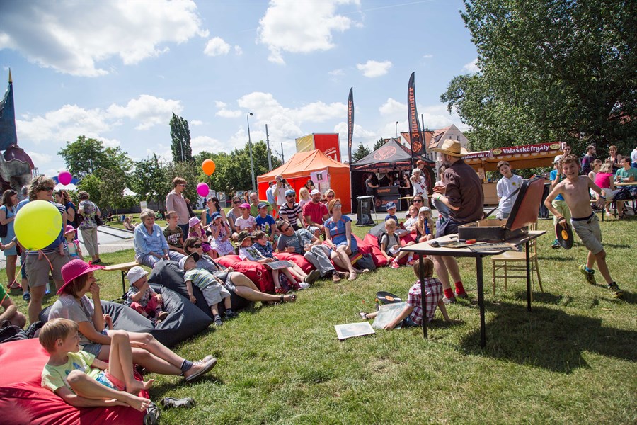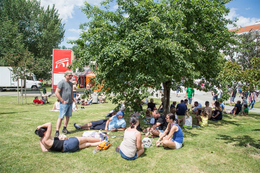 Sousedská slavnost probíhala také na obou březích Vltavy. Na staroměstském břehu se nacházela literární kavárna, kde jsme představili část literární tvorby, kterou fond podporuje. V rámci „kavárenských“ programů jsme se dotkli nelehkých témat minulosti (organizace Post Bellum představila své komiksové zpracování nuceného nasazení), ale také jsme nahlédli do potýkání se se životem svérázného Vandama z románu Jaroslava Rudiše Národní třída (scénické čtení Alexandra Swobody z divadla v Brémách).