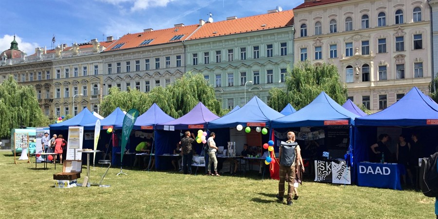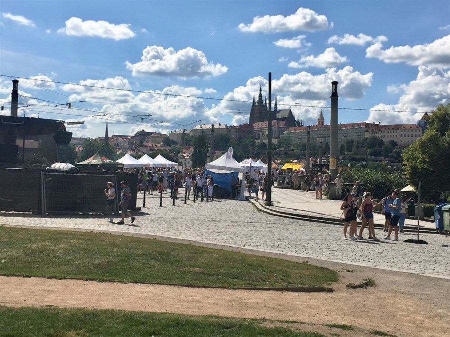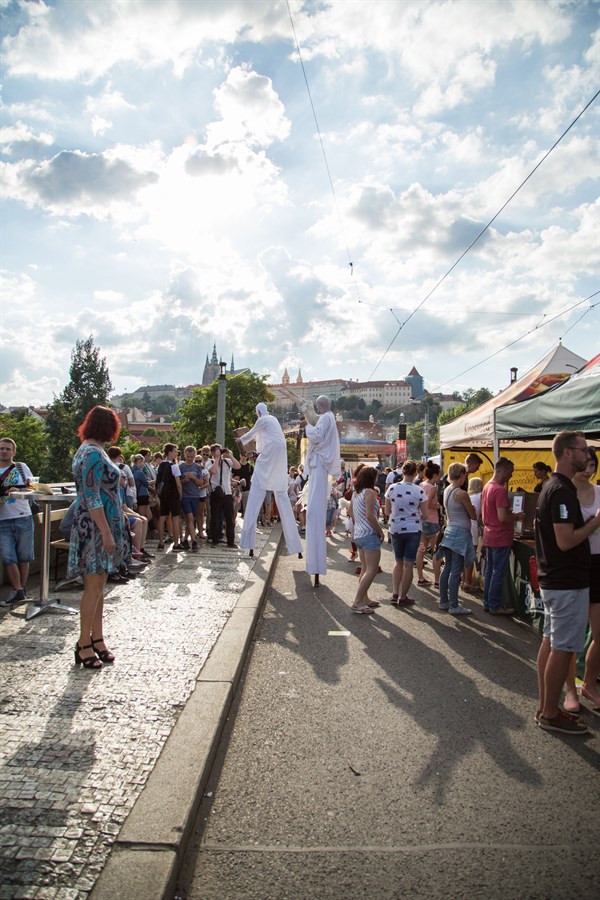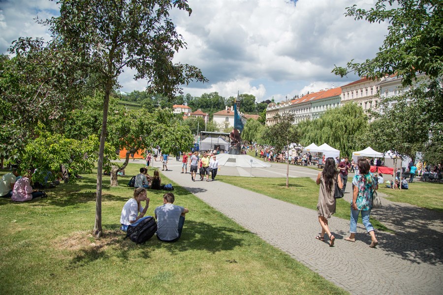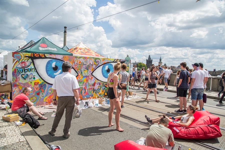 Pohodovou atmosféru na mostě mohli návštěvníci vychutnávat z perspektivy laviček, lehátek, fatboyů rozmístěných po celém prostranství. V parku na Klárově si mohli sednout přímo na trávu, což také mnozí z nich učinili. Na dohled tak měli čilý ruch na divadelním pódiu, kde se v pravidelném taktu střídaly představení pro děti, pro dospělé a také aktivity jazykové animace, kterou připravila organizace Tandem. Na malostranské straně také vzniklo malé stanové městečko, v němž organizace dlouhodobě se věnující česko-německým tématům představovaly svou činnost. Mezi dvacítkou zapojených institucí bylo možné nalézt mj. i Antikomplex, který kolemjdoucí ponoukal k zamyšlení, co by si s sebou vzali na cestu, kdyby měli opustit domov, a také Střední zdravotnickou školu a Vyšší odbornou školu zdravotnickou z Jihlavy. Zdravotníci byli nejen připraveni ošetřit návštěvníky, kdyby bylo třeba, ale také jim na simulovaných situacích ukazovali, jak takovou první pomoc vůbec poskytovat. Na výstavě Zachráněné kulturní dědictví, která návštěvníkům představovala některé ze stavebních památek, na jejichž obnově se fond podílel, mohli návštěvníci porovnávat, jak řada objektů vypadala na počátku devadesátých let a jak vypadají nyní.