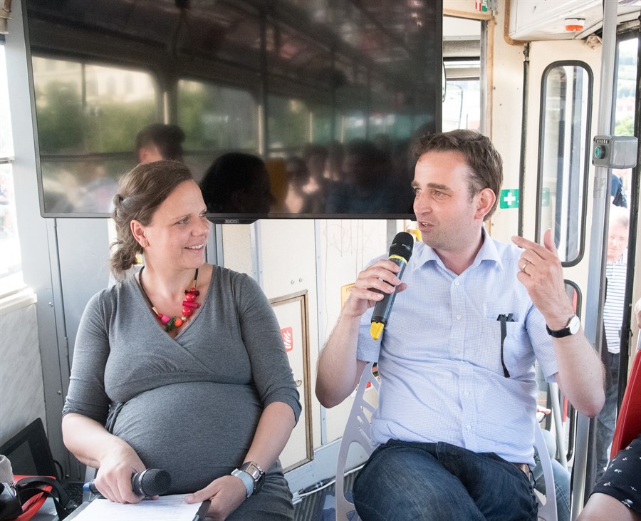 Velkou pozornost na mostě bezesporu přitahovala naše diskusní tramvaj, která cestující nepřemísťovala geograficky, ale rozšiřovala jim obzory: podobně jako se to děje při česko-německých diskusích, v rámci odborné výměny, transferu idejí i zkušeností i vzájemných inspiracích.