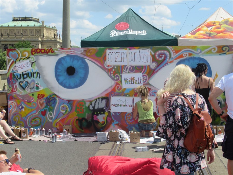 Náladu na mostě navíc dotvářely zvuky z pódia open mike, na němž měli začínající umělci příležitost ukázat světu svůj talent. Poblíž se také nacházel stánek Česko-německého fondu budoucnosti. Kdo chtěl, mohl si přijít popovídat s našimi referenty o tom, co fond dělá, případně, co by bylo možné s podporou fondu dělat. Protože jsme Fond budoucnosti (a naším letošním tématem roku je otázka: Jakou budoucnost chceme?), kladli jsme návštěvníkům také tuto otázku - a dostali řadu zajímavých a podnětných odpovědí.