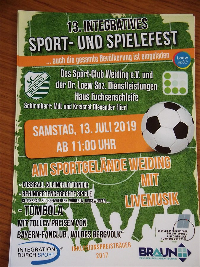 Již popáté se v bavorském Weidingu konal fotbalový turnaj pro handicapované fotbalisty. Tentokrát se ho účastnilo 10 fotbalových družstev, které proti sobě nastoupily ve dvou skupinách. Vítězové každé skupiny hráli pak o celkové vítězství, druzí o třetí místo, třetí o páté místo atd. Každé družstvo dostalo pohár a památeční medaili. Jelikož se všichni účastníci nemohli kvůli svému postižení na fotbalovém turnaji podílet, byli jim k dispozici i jiné možnosti sportovního a herního vyžití – například hra s obrovskou herní kostkou nebo tombola, přičemž vyhrával každý, kdo přispěl minimálně 1,00 € - například (sponzorované) fotbalové rukavice, míče, poukazy na lukostřelbu a různé drobné předměty.