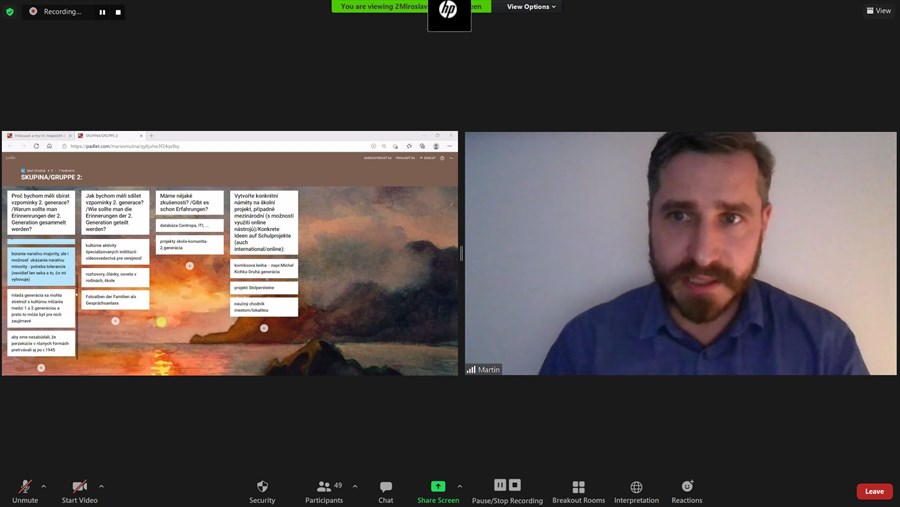 Ohlas účastnice:  „Chtěla bych vám všem velice poděkovat za možnost navštívit aspoň virtuálně v čase covidu hned 2 země – Česko a Nemecko. Setkání s Vámi bylo pro mně cenné, nejen z pohledu učitele, ale také člověka, který se zajímá o dějiny 20.století. Program byl výborný, hosté taktéž, rozdělení do skupin super…“ Miroslava Košťálová, učitelka