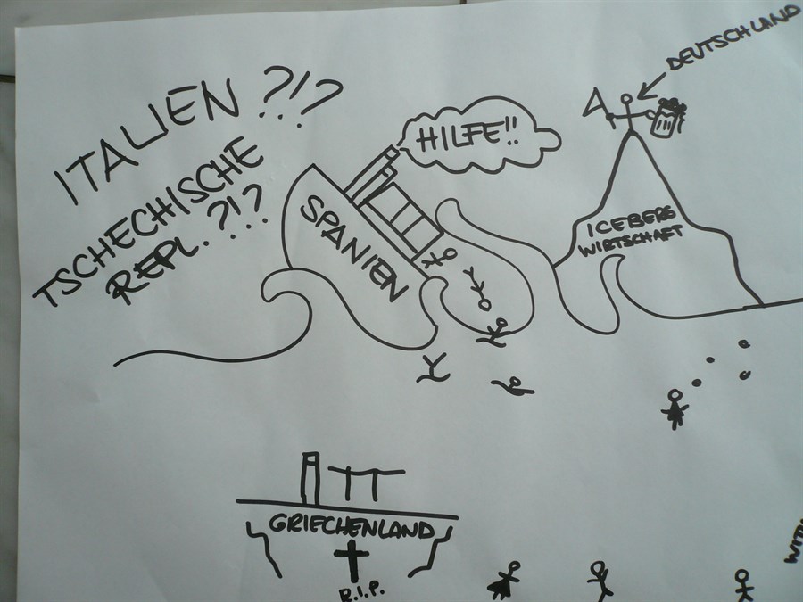 Během projektu se měli možnost studenti seznámit s různými evropskými institucemi, které mají své sídlo v Německu (jako např. Centrální banka ve Frankfurtu nad Mohanem), zpracovávali téma společné evropské měny, na základě karikatury z novin vytvářeli karikatury (viz fotografie prací v příloze).