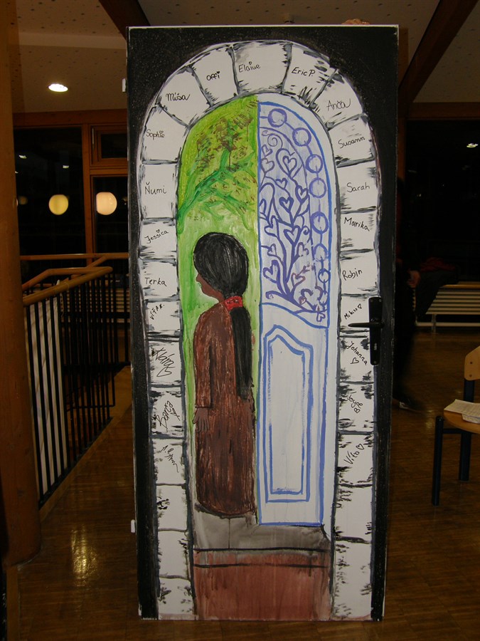 Výsledkem našeho úsilí byla společná projektová práce v jazykově smíšených skupinkách, kdy se studenti zabývali konkrétními případy uprchlických rodin a zpracovávali jejich životní příběhy s následnou prezentací před publikem. Na závěr se kreativně vyjádřili na dané téma tím, že tematicky pomalovali velké dveře a ozdobili je poselstvím „Otevřená srdce otevírají dveře“ jako symbol naší otevřenosti vůči uprchlíkům.