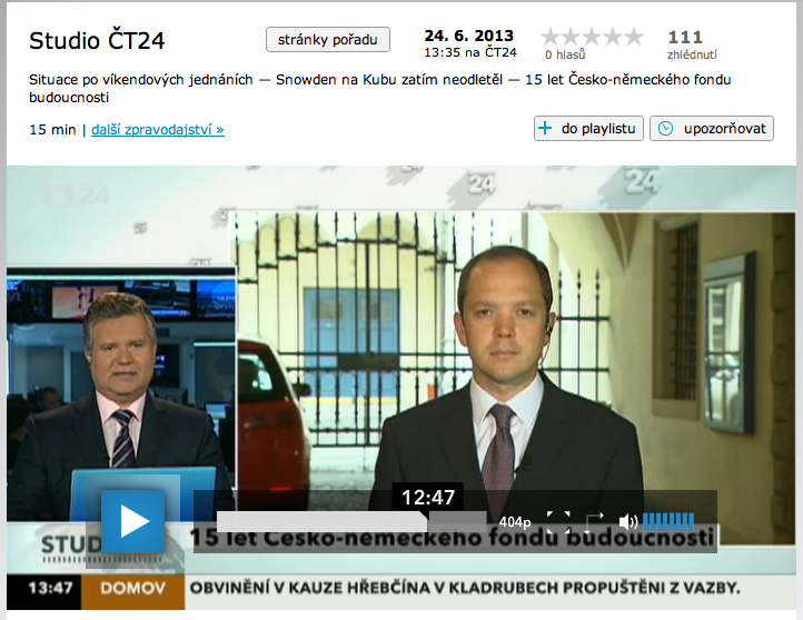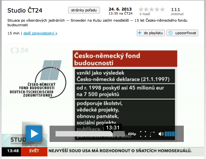 Wie hat sich in den letzten 15 Jahren die Zusammenarbeit zwischen Tschechen und Deutschen verbessert? Und ist das nicht nur eine Verbesserung der Beziehungen an der Oberfläche, nämlich immer nur dann, wenn gerade ein Projekt läuft? Warum schafft es der Deutsch-Tschechische Zukunftsfonds nicht, die brisanten Fragen nach den Beneš-Dekreten oder einer Entschädigung für die Vertreibung der deutschen Bevölkerung endlich aus der Welt zu schaffen? Auf diese Fragen von Studio24-Moderator Daniel Takáč (Česká televize) antwortet live von der Prager 15-Jahr-Feier des Zukunftsfonds der tschechische Geschäftsführer Tomáš Jelínek (auf Tschechisch).