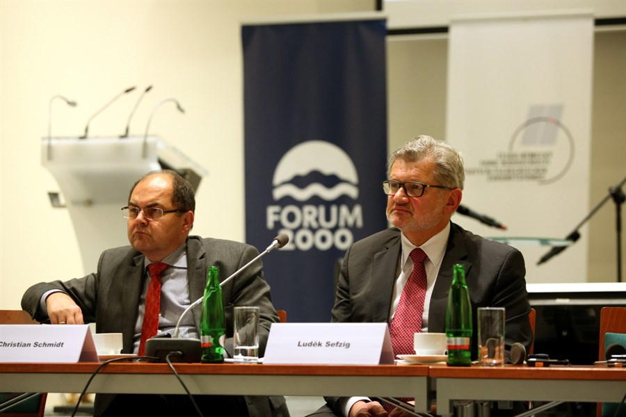 Die Teilnehmer bezogen sich häufig auf die Deutsch-Tschechische Erklärung aus dem Jahre 1997, die bedeutenderweise zu den derzeit hervorragenden Beziehungen zwischen beiden Staaten beigetragen hat. Bei den heutigen instabilen Verhältnissen auf dem alten Kontinent ist es laut einiger Podiumsredner offensichtlich, dass die Zusammenarbeit zwischen Tschechien und Deutschland auf einem europäischen Fundament aufgebaut sein muss. „Wir haben es geschafft, die Grundsteine der Erinnerung für die Zukunft zu legen. Jetzt müssen wir uns überlegen, wie wir in Europa unsere gemeinsamen Interessen zur Geltung bringen“, so Bundesminister Christian Schmidt, Vorsitzender des Beirats des Deutsch-Tschechischen Gesprächsforums. Petr Pithart, der ehemalige Präsident des tschechischen Senats, und Peter Hartmann, der ehemalige Staatssekretär im Auswärtigen Amt und zudem gemeinsam mit dem ehemaligen Vizepremierminister Alexandr Vondra, Hauptverhandler der Deutsch-Tschechischen Erklärung, sprachen über die Aspekte der europäischen Zukunft der Tschechen und Deutschen. Petr Pithart äußerte sich unter anderem dahingehend, dass der Schwerpunkt der Sorgen der Europäer sich jetzt nach Osten verschiebt – Richtung Russland.