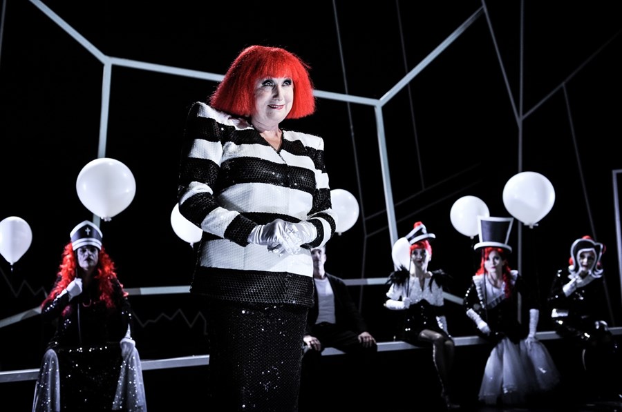 Der Besuch der alten Dame (Deutsches Theater Berlin): Elemente des Schwarzen Theaters mit Songs von Lady Gaga.