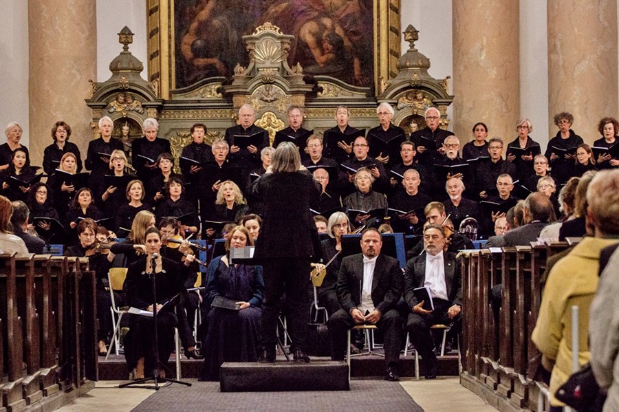 Im Zentrum stand Hans Krásas Kantate Die Erde ist des Herrn für Soli, Chor und Orchester. Der Prager Komponist aus dem deutschen Judentum war in Theresienstadt inhaftiert und verlor 1944 in Auschwitz sein Leben. In eindringlicher Klangsprache gestaltet er in seiner Kantate ausgewählte Psalmtexte, von geflüstertem Flehen und innigem Beten über erschütterndes Aufschreien bis hin zum erhabenen Lobpreis Gottes. Ergänzt wurde das Programm durch zwei Orgelwerke – gespielt auf der kürzlich restaurierten Orgel – und dem Schicksalslied von Johannes Brahms sowie dem Abschiedslied Mond, so gehst du wieder auf und dem Passover Psalm von Erich Wolfgang Korngold.