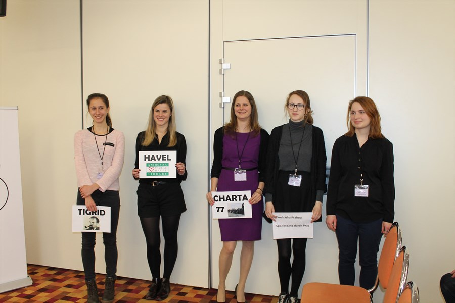 Die Schlüsseljahre der tschechischen Geschichte prägten nach dem Vortag von Dr. Koura auch das Nachmittagsprogramm am Samstag. Es wurden verschiedene Orte in Prag besucht, wie die Václav-Havel-Bibliothek mit einer neuen Ausstellung zum Dichterpräsidenten, eine Ausstellung zu Pavel Tigrid, einer „Stimme der Freiheit“, und eine Ausstellung zur „Charta 77“. In einem biographischen Gespräch wurde der Jesuitenpater František Lízna vorgestellt. Er litt als politischer Gefangener unter dem kommunistischen Regime und wurde im vergangenen Herbst mit dem Preis „Paměť národa“ (Nationales Gedächtnis) als wichtiger Zeitzeuge geehrt. Zudem führte ein kommentierter Stadtrundgang auf den „Spuren der schicksalhaften 8-er Jahre“ die Konferenzteilnehmer durch Prag.