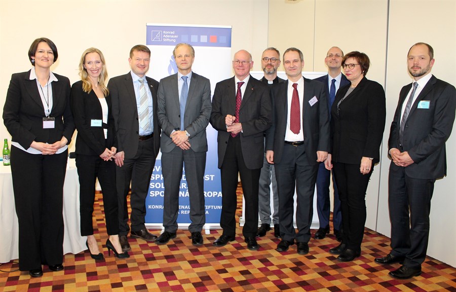 Prof. Tomáš Halík, Präsident der Tschechischen Christlichen Akademie, war Hauptreferent des dritten Konferenztages. Mit Blick auf den Populismus und die Entwicklungen in Polen und Ungarn machte er deutlich, dass die Bürger nicht ruhig bleiben dürften. Der deutsche Botschafter in Prag, Dr. Christoph Israng, machte in der anschließenden Diskussion deutlich, dass es auch in Deutschland „krisenhafte Phänomene der liberalen Demokratie“ gebe. Dr. Jaroslav Šebek blickte auf den zurückliegenden Wahlkampf um das Präsidentenamt in Tschechien. Der Historiker gehörte zum Wahlkampfteam von Professor Jiří Drahoš. „Wir machen uns Gedanken, wie wir diese positive Energie für die Zukunft weiter nutzen können“, erläuterte Šebek. Der Generalsekretär der Tschechischen Bischofskonferenz P. Dr. Stanislav Přibyl sieht wenig, worauf sich die Menschen heute stützen könnten. Dies sei seiner Ansicht nach die Ursache für zunehmende Angst.