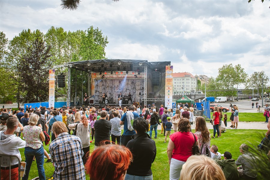 Auf großes Interesse stieß bei den Besuchern auch das Musikprogramm. Es begann mittags und dauerte bis in den späteren Abend. „Headliner“ waren die lustige Gruppe Mydy Rabycad aus Tschechien mit ihrer Leadfrau Žofie Dařbujánová sowie aus Deutschland Alice Francis, die Queen des Elektroswings. Als weitere interessante Interpreten traten die populäre tschechische Band Slza, das Pilsener Indie-Folk-Duo Teepee und das deutsche Duo Hundreds auf.