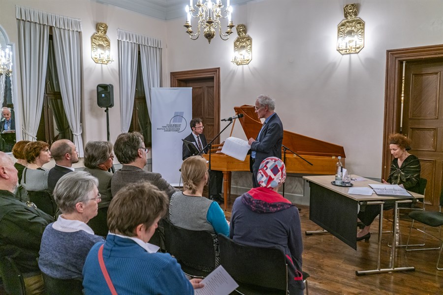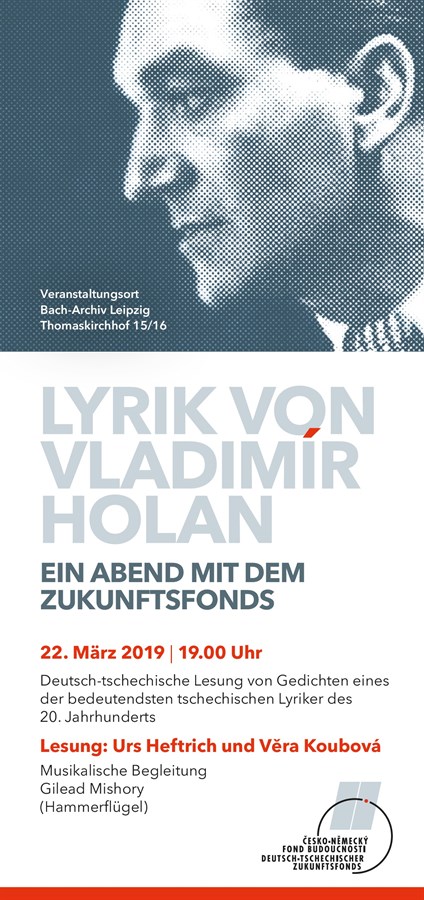In einer deutsch-tschechischen Lesung im Bach-Archiv präsentierten wir eines unserer literarischen Leuchtturmprojekte: die zweisprachige Gesamtausgabe der Werke von Vladimír Holan (1905-1980), des neben Jaroslav Seifert bedeutendsten tschechischen Dichters des 20. Jahrhunderts. Der Slawist Urs Heftrich, die treibende Kraft hinter diesem Projekt, und die Übersetzerin Věra Koubová rezitierten Holan-Gedichte auf Deutsch und Tschechisch, begleitet von dem Pianisten Gilead Mishory am Hammerflügel mit Werken von Wolfgang Amadeus Mozart und Leoš Janáček - zwei Komponisten, die Holan sehr inspiriert haben.