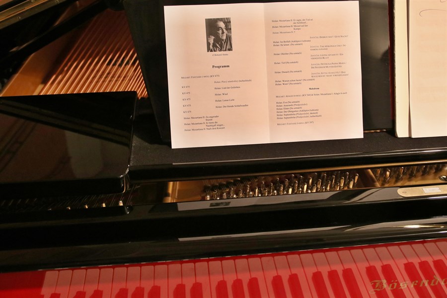 Diese ungewöhnlich enge Verbindung von Wort und Musik im Werk des Dichters wurde von dem Freiburger Pianisten Gilead Mishory und den beiden Holan-Übersetzern Urs Heftrich und Věra Koubová im Rahmen einer musikalischen Lesung hörbar gemacht. Den Höhepunkt des Programms mit dem Titel „Holan – Mozart – Janáček: Prager Poesie und ihre Inspiration durch Musik“ stellte dabei die Aufführung des „Adagio h-Moll“ als Melodram dar. Die Lesung wurde in fünf Städten präsentiert: in Leipzig, Augsburg, Prag, Berlin und Regensburg. Die Lesung im Rahmen der Leipziger Buchmesse erfreute sich eines derartigen Besucherandrangs, dass nicht einmal alle Interessenten hereingelassen werden konnten. Zu diesem Ansturm trug sicher auch die Aura des Aufführungsortes bei: Die Lesung fand im Bach-Archiv statt, und Gilead Mishory spielte Mozart und Janáček an einem Hammerflügel. Bei Mozarts Kompositionen ist dies nichts Ungewöhnliches, im Falle von Janáček dürfte es sich hingegen um eine Premiere gehandelt haben.
