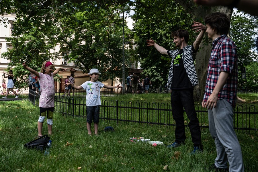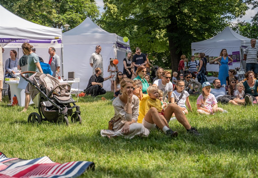 Das war aber noch längst nicht alles! Das Publikum musste teils lachen, teils blieb ihm der Atem stocken, als es die akrobatischen Kreationen vom Cirkusu trochu jinak (Zirkus etwas anders) sah. Die Theater Ensembles Performalita, Spielraum Kollektiv und Komplex Chemnitz warfen wiederum mit ihren Performances die Frage auf, was konkret nachhaltigen Lebensstil im Leben jedes Einzelnen ausmacht und wie bereitwilig wir sind, unser Leben mit Blick auf die bevorstehende ökologische Krise zu ändern. Florent Golfier aus der Organisation tYhle hielt für die Festivalbesucher mehrere Sprach-Workshops bereit, in denen diese ihre Mehrsprachigkeit testen konnten. Und last but not least half auch der Kinderclub des Goethe Instituts dabei, sich mit einer Fremdsprache bekannt zu machen.