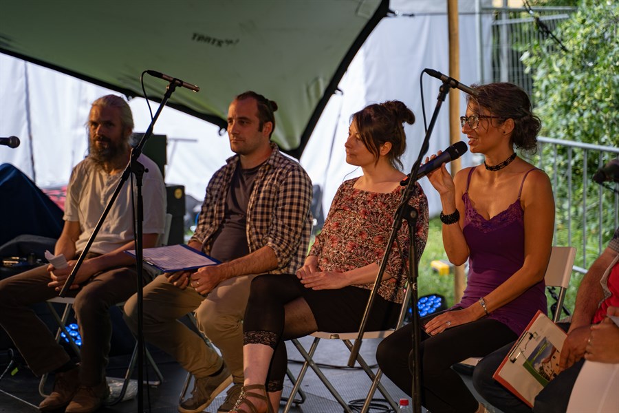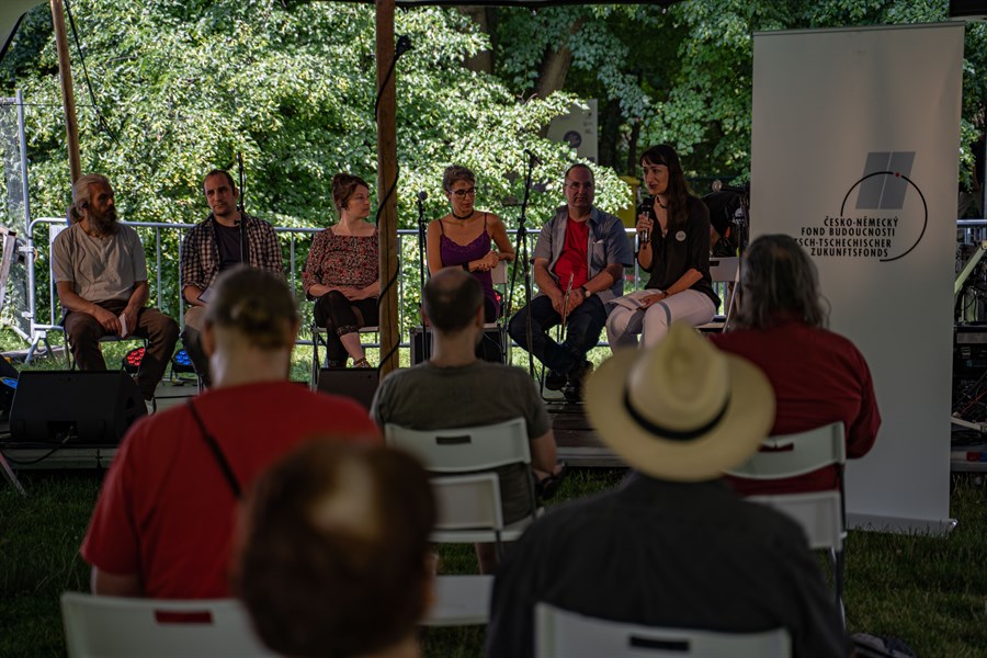 Auf den Brunch folgte die Debatte “Fünf vor zwölf: Eine deutsch-tschechische Diskussion über Klima und Diversität”, in der die Landwirte Jiří Prachař (AMPI) und Klaus Strüber, die Künstlerinnen Verena Russel (Komplex Chemnitz) und Dana Račková (Performalita) sowie Marek Liebscher vom Umweltzentrum Dresden über ihre Erfahrungen mit gemeinsamen Projekten sprachen. Moderiert wurde die Debatte von Veronika Kupková.