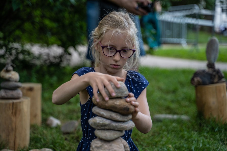 Den ganzen Tag über hatten die Festivalbesucher die Möglichkeit, sich in Landart-Gestaltung zu versuchen, unter der Regie vom Geopark Ralsko. Gesichter in den Bäumen und Steine, die an der Grenze der Gravitationsgesetze entlang balancierten, waren ein großer Erfolg und stießen beim Publikum auf Begeisterung. Wer wollte, konnte dank AMPI, einem Netzwerk für biodynamische Bildung und dem Umweltzentrum Dresden etwas mehr über ökologische Landwirtschaft erfahren und darüber, wie sich jungen Menschen ein Interesse für Umwelt und Umweltschutz vermitteln lässt. Der Verein Kulturaktiv Dresden vermittelte uns seine Erfahrungen mit nachbarschaftlichem Engagement in Dresden, und die Aktion Sühnezeichen Friedensdienste stellte Aktivitäten vor, mit denen sie zur Verständigung zwischen Deutschen und Tschechen beiträgt.