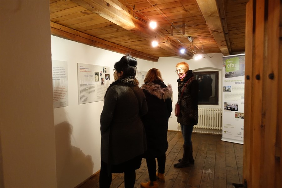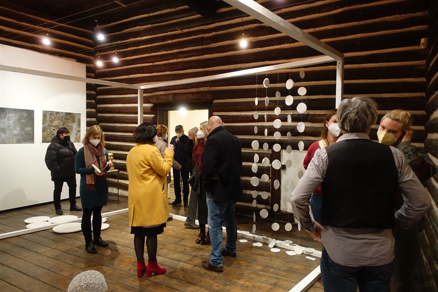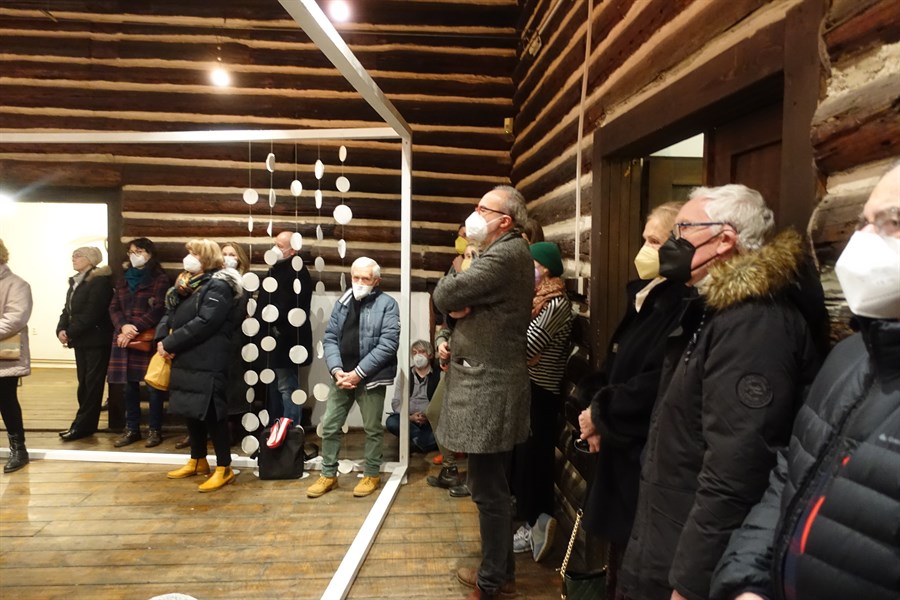 Die Eröffnung und der Aufbau haben einen Hauch der Atmosphäre des Symposiums nach Litoměřice gebracht. Das lag am deutsch-tschechischen Aufbauteam, das sich nicht nur Gedanken machen musste, wie das Große ins Kleine passt, sondern auch wie eine behutsame Installation in dem 500 Jahre altem Haus funktioniert. Und Besucher*innen aus der Region und Deutschland haben die Bemühungen und das Stattfinden der Vernissage mit zahlreichem Besuch belohnt.