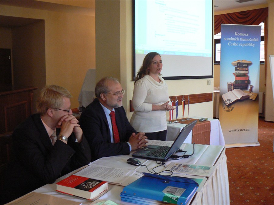 Referenten: Dr. Paul Springer – Direktor des Amtsgerichts Siegen; ass. iur. Michael Wilding – Jurist, DAAD-Fachlektor für Deutsches Recht; Prof. doc. JUDr. Stanislava Černá, CSc. – Leiterin des Lehrstuhls für Handelsrecht, Juristische Fakultät an der Karls-Universität Prag; PhDr. Milena Horálková, Lehrstuhl für Fremdsprachen der Juristischen Fakultät an der Karls-Universität Prag, pplk. JUDr. Dušan Fousek, Polizei der Tschechischen Republik - Abteilung Bekämpfung der organisierten Kriminalität und JUDr. Petr Vrtěl – Richter am Okresní soud Prostějov. Frau PhDr. Milena Horálková, erfahrene Dozentin, Übersetzerin und Dolmetscherin leitete den traditionellen Terminologie-Workshop.