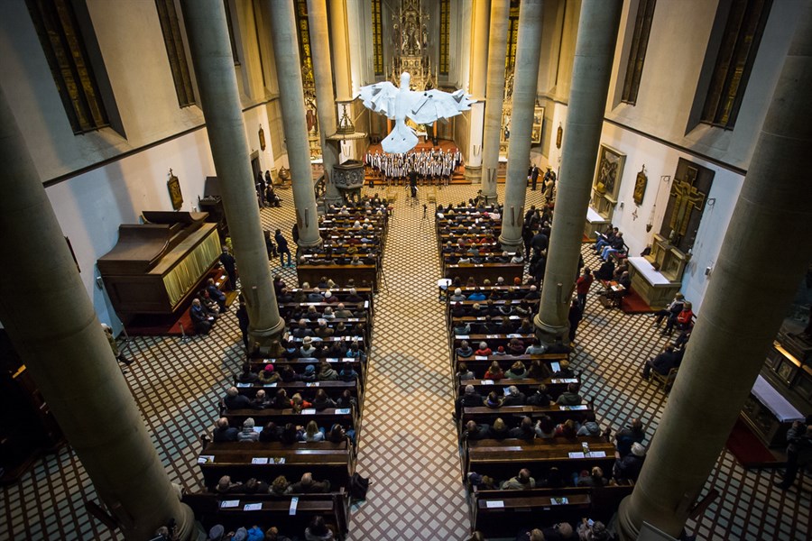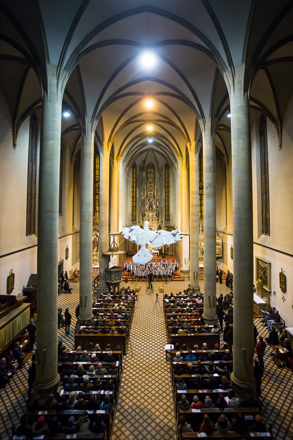 Am 5.11.2016 luden junge Tschechen Vertriebene und Zeitzeugen zu einem Wochenende nach Prag ein. Auf dem Programm stand die Eröffnung einer Ausstellung über deutsch-tschechische Freundschaften und ein Konzert mit eigens für diesen Anlass komponierter Musik in der Kirche Sv. Antonín in Holešovice, von deren Decke eine große Friedenstaube hing.
