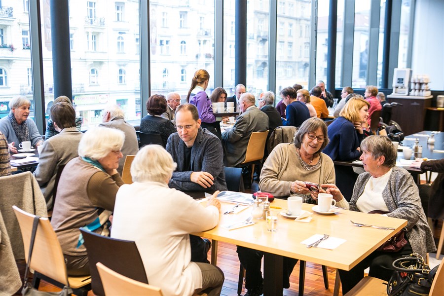 Die Gäste aus Deutschland kamen am Samstagmittag in Prag an, wo sie die Möglichkeit hatten, an einer von drei Touren durch Holešovice teilzunehmen, alle thematisch verbunden mit den ehemaligen deutschen Bewohnern Prags und ihrer Geschichte. Danach ging es zur Ausstellungseröffnung von „Unter einem Dach“, die Antikomplex aus Interviews mit Menschen erstellt hatte, die eine ungewöhnliche Freundschaft verbindet: Sie alle haben sich über Orte kennengelernt, die sie zu einem Zeitpunkt in ihrem Leben ihre Heimat nannten. Manche wurden aus dieser Heimat vertrieben, andere haben hier ihre Familien gegründet. Was jedoch zählt, ist, wie man heute aufeinander zugeht, Ängste überwindet und mutig gemeinsam in die Zukunft schaut.