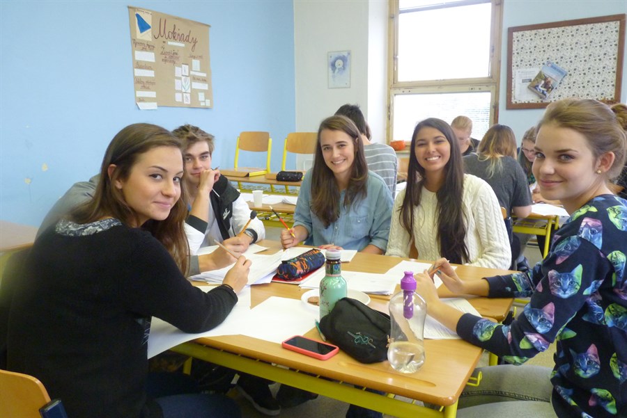 Die erste Begegnung zwischen beiden Schulen fand vom 6. bis zum 11. Oktober 2014 in Třebíč statt. Jeweils 200 Fragebögen aus den Schulen über Zigaretten, Alkohol und Cannabis wurden ausgewertet und die Ergebnisse verglichen. Plakate wurden erstellt: Balken-, Kreis- und Säulendiagramme (siehe Anhang).