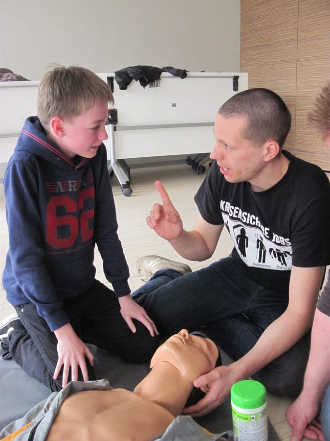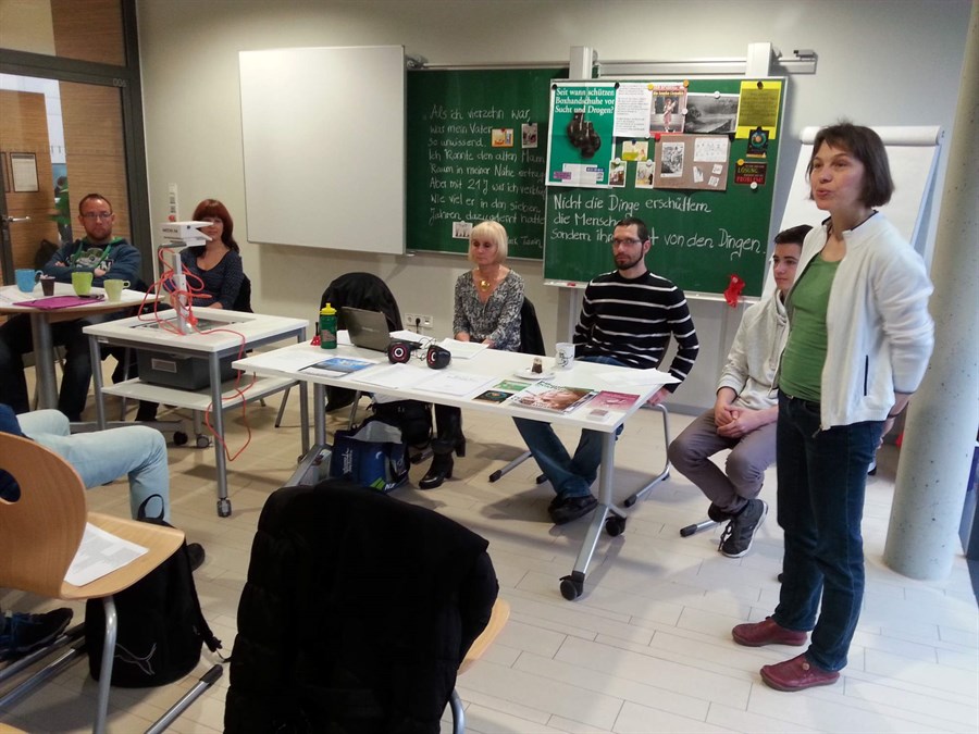Vom 24.3.-01.4.2015 fand der erste Austauschaufenthalt statt, die tschechischen Schüler besuchten ihre deutschen Partner. Die erste Aktion war ein Treffen mit Polizisten des Referats Sucht und Drogen. Sie machten die Schüler mit der Einteilung der Drogen in leichte und harte, legale und illegale bekannt sowie mit Begriffen wie Straftat, Täter, Zeuge usw. Außerdem trafen sich die Schüler mit Mitgliedern der Selbsthilfegruppe ANKER. Die Schüler besuchten auch das Jugendzentrum SPIKE. Beim 2-tägigen  Graffiti-Workshop überlegten die Schüler, was sie im Leben stark macht. Daraus entstand eine Collage. Am 2. Tag durften die Schüler Graffiti an eine Wand sprühen. Bei der letzten Aktion wurden die Rettung eines bewusstlosen Menschen und Wiederbelebungsmaßnahmen geübt.