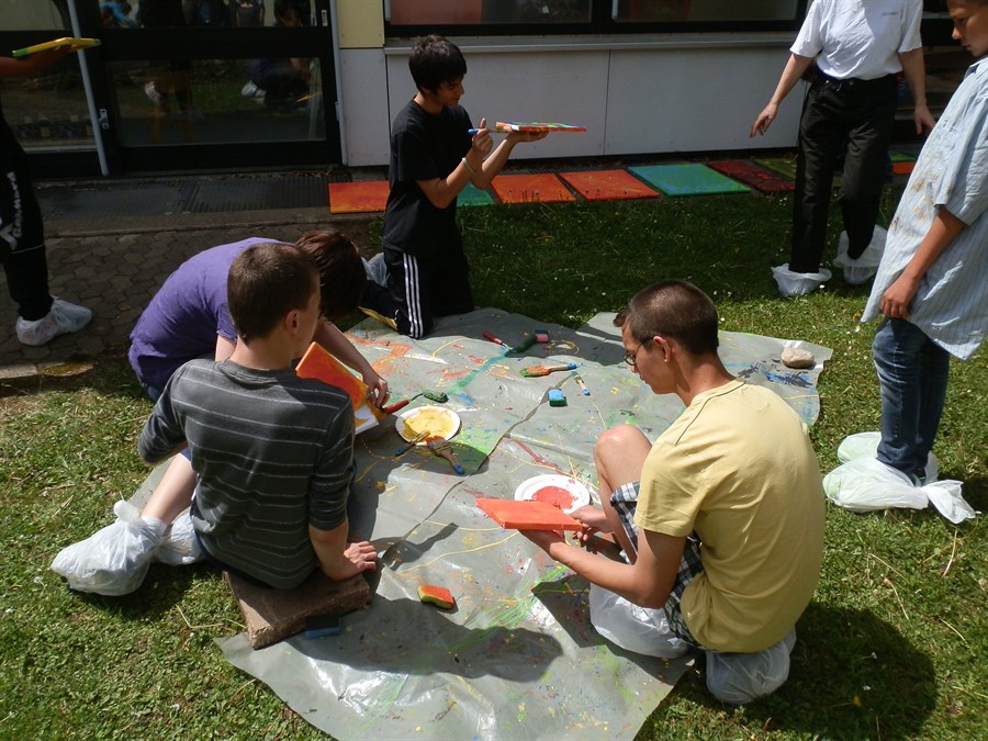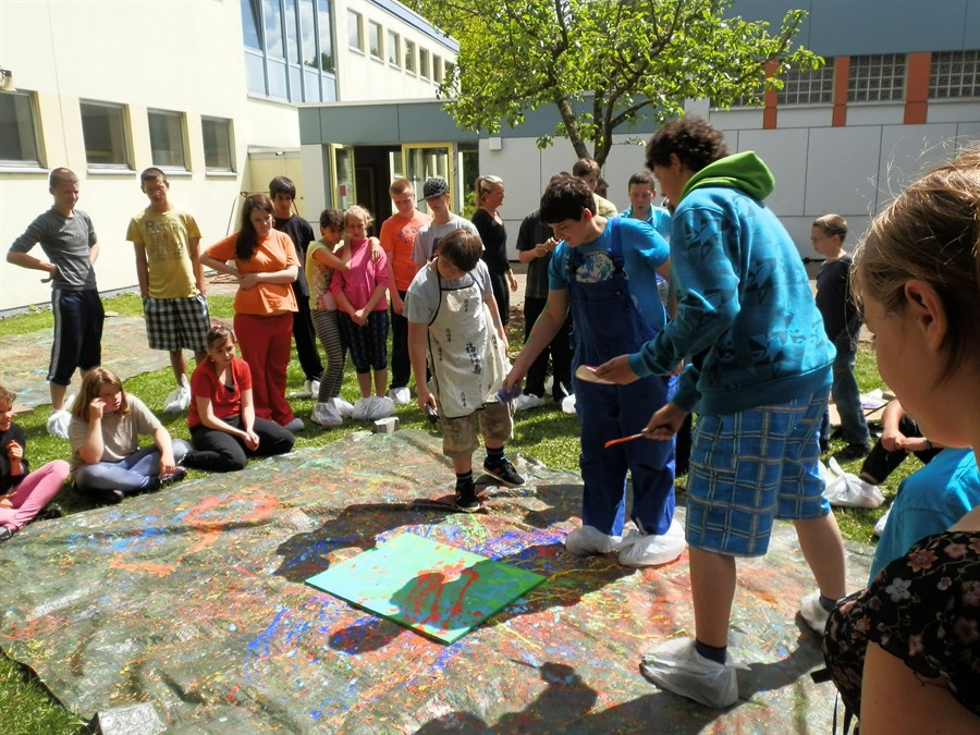 Ziel der Zusammenarbeit war in diesem Jahr das Erstellen eines Buches mit Fotos künstlerischer Schülerarbeiten und der Schüler selbst. Bereits im März und April haben die Schüler im Unterricht angefangen, mit verschiedensten Techniken die Bilder zu gestalten. Die Arbeiten wurde in Neuendettelsau beendet, wo die Schüler gemeinsam mit der Technik „Paiting“ gearbeitet haben.