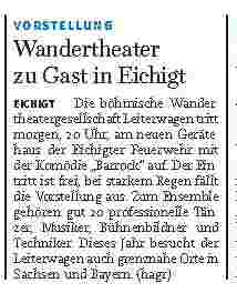 Das Theater wanderte im Jahr 2016 durch Westböhmen und Bayern.