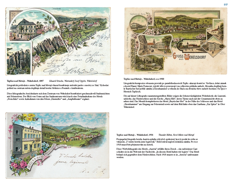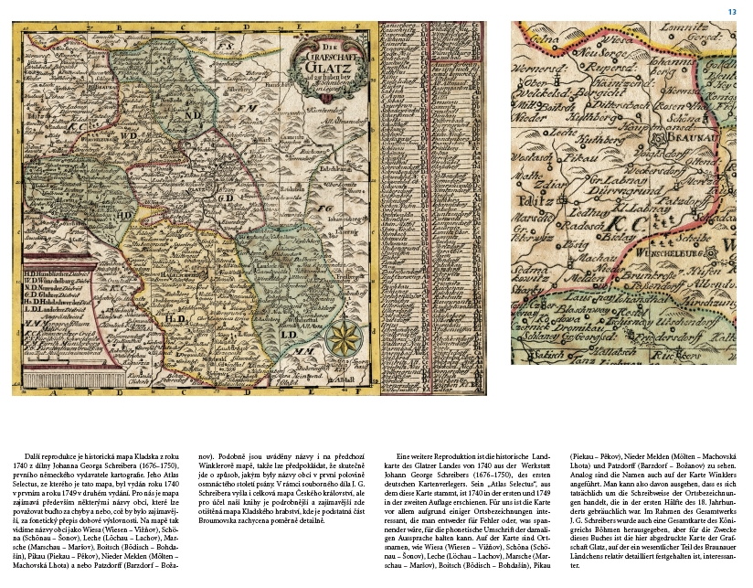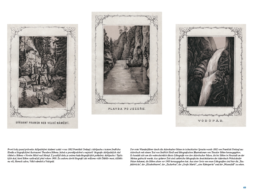 Das Buch berichtet auch von Architektur und Städtebau, von den Veränderungen der Ortschaften und Bauten, von verschwundenen Häusern, Kirchen und Denkmälern, von der Entwicklung der Region und der Orte, in denen auch heute Menschen wohnen, arbeiten, Spaß haben und sich erholen. Das Buch handelt auch von der Landschaft und ihren Veränderungen, den Schönheiten und Besonderheiten, es widmet sich den zahlreichen Sehenswürdigkeiten in den Labyrinthen der Felsenstädte und den Ausblicken, die sich von den Felsvorsprüngen bieten, es lässt die Sandsteingebilde lebendig werden, die schon über mehrere Jahrhunderte hinweg Gegenstand der Bewunderung sind. Der Reichtum der Region besteht nicht nur in der einzigartigen Architektur, für die einerseits die ländlichen Bauten – insbesondere die typischen Braunauer Bauernhöfe – stehen und die darüber hinaus auch durch die sakrale Architektur repräsentiert wird, allen voran das Braunauer Benediktinerkloster und eine Gruppe barocker Dorfkirchen, die ihresgleichen sucht. Das Gebiet ist auch reich an Naturschönheiten und -besonderheiten, aber vor allem ist es eine geschichtsträchtige Region, in der Spuren der gesamten Entwicklung der böhmischen Länder zu finden sind. Die Publikation ist in deutscher und tschechischer Sprache.